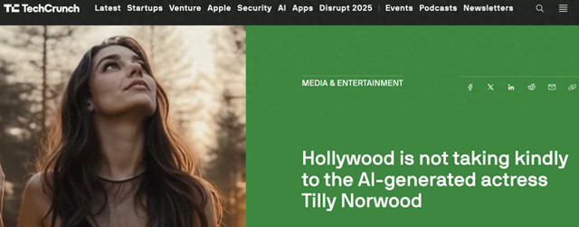 [环球网科技综合报道]10月2日消息,据外媒TechCrunch报道,由伦敦制作公司Particle6人工智能部门Xicoia创造的虚拟人物“蒂莉·诺伍德”(TillyNorwood)本周成为好莱坞焦点。这位在社交平台拥有4万粉丝的“AI女演员”在苏黎世电影节首次公开后,其制片方正在美国寻求经纪公司代理,引发演员工会强烈反弹,也让合成表演议题再度升温。